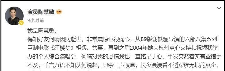自何晴去世以来,许多曾与她共事过的演艺界人士纷纷发文悼念。